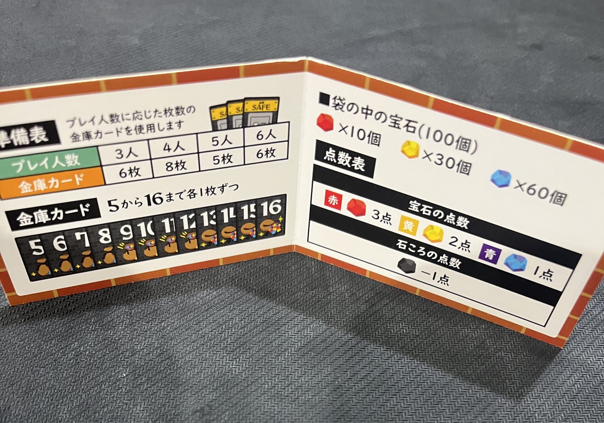 遊ぶ人数に合わせた、金庫カードを中央に置く。